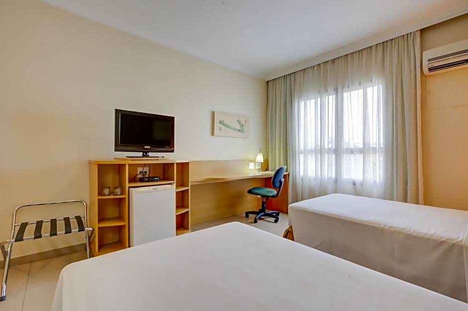 This spacious air-conditioned room with anti-allergy carpeting contains a 26-inch LCD cable TV, a mini-bar and a bathroom with a hairdryer. It provides an electronic safe. WiFi is free.